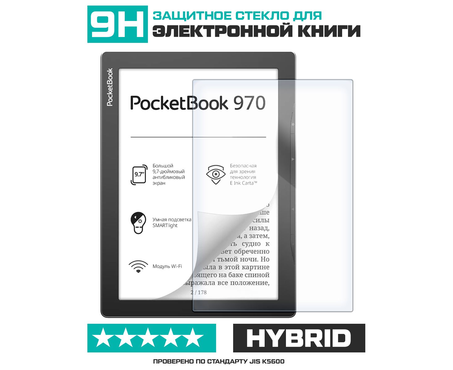 Стекло защитное гибридное для PocketBook 970