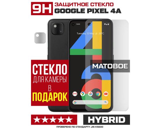 Стекло защитное гибридное МАТОВОЕ Krutoff для Google Pixel 4a + защита камеры (2 шт.)