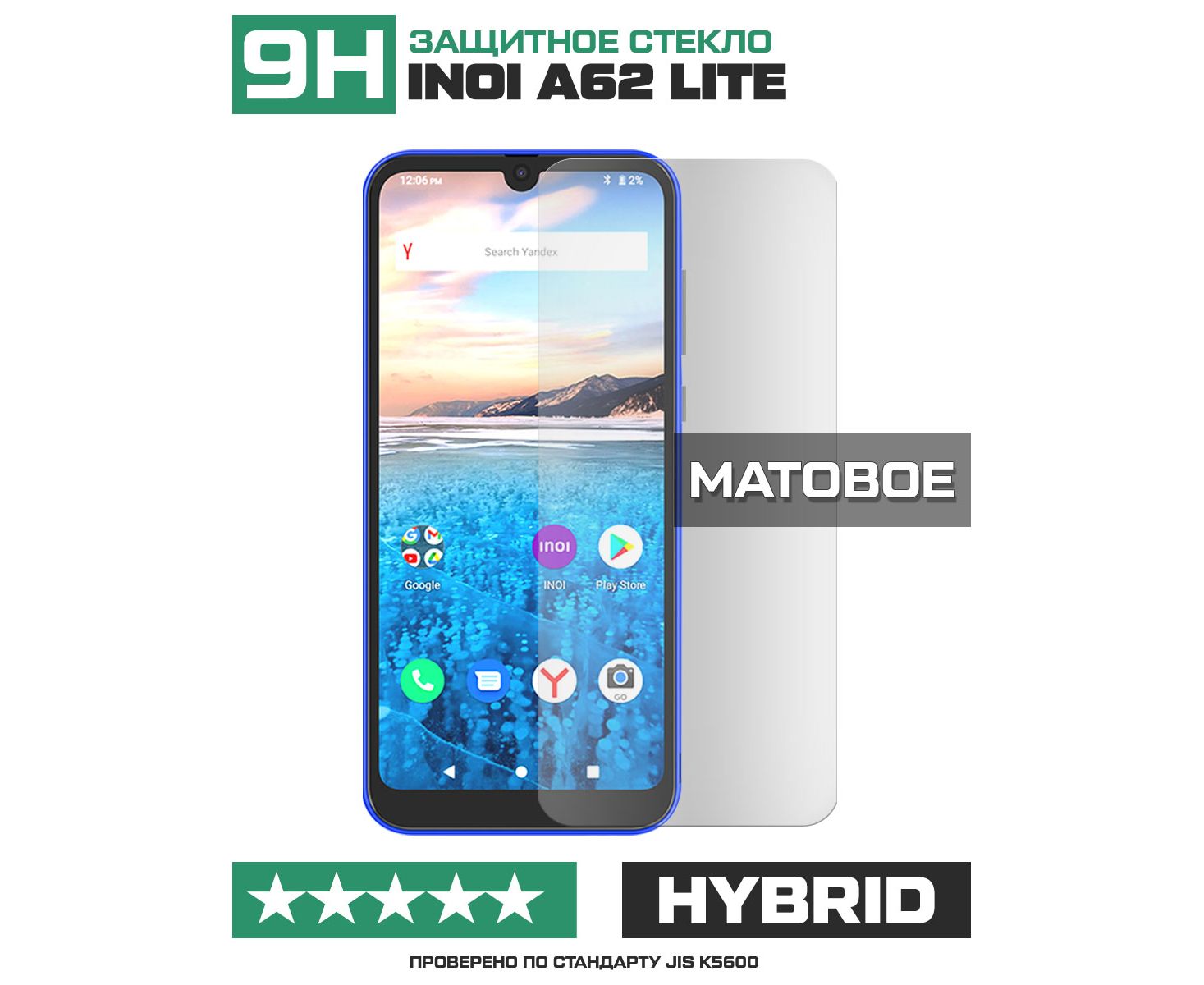 Стекло защитное гибридное МАТОВОЕ Krutoff для INOI A62 Lite
