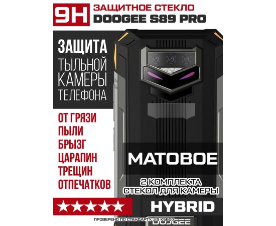Стекло защитное гибридное МАТОВОЕ Krutoff для камеры Doogee S89 Pro (2 шт.)