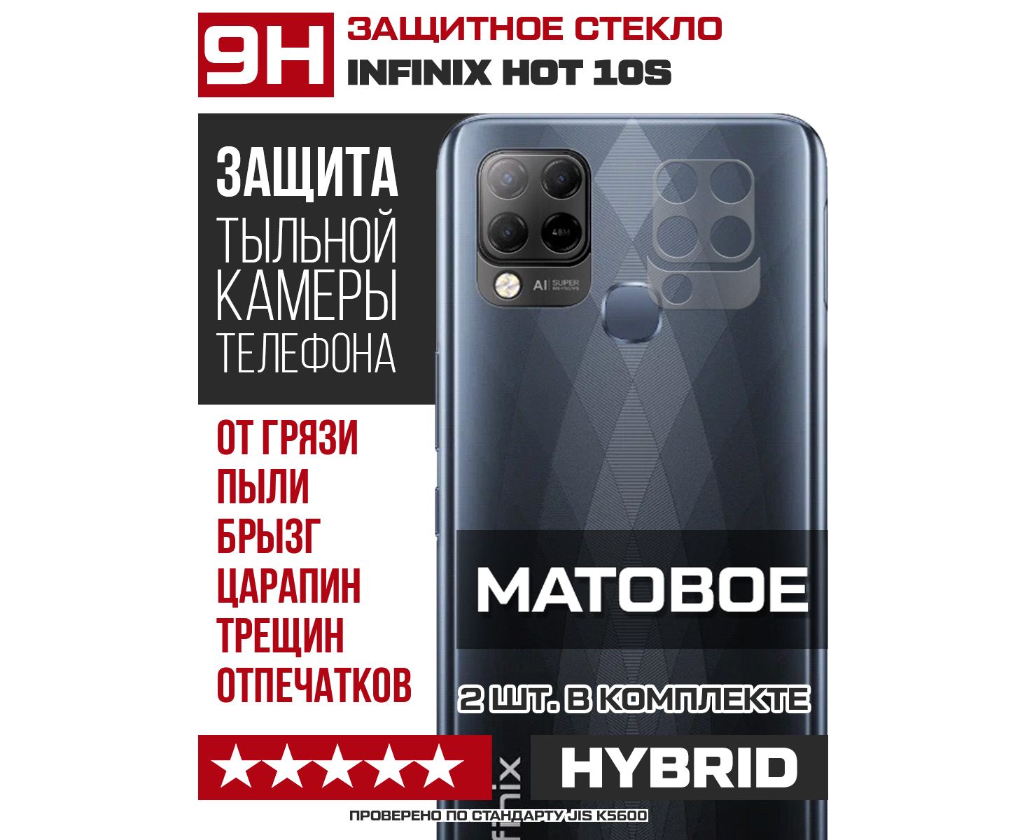 Стекло защитное гибридное МАТОВОЕ Krutoff для камеры INFINIX Hot 10S (2 шт.)