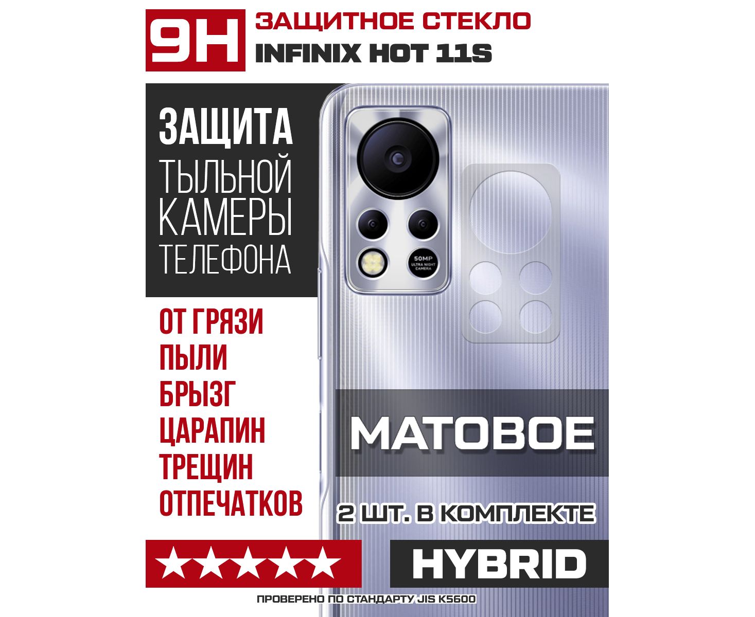 Стекло защитное гибридное МАТОВОЕ Krutoff для камеры INFINIX Hot 11S (2 шт.)