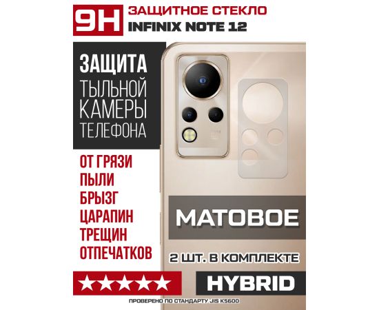 Стекло защитное гибридное МАТОВОЕ Krutoff для камеры INFINIX Note 12 (2 шт.)