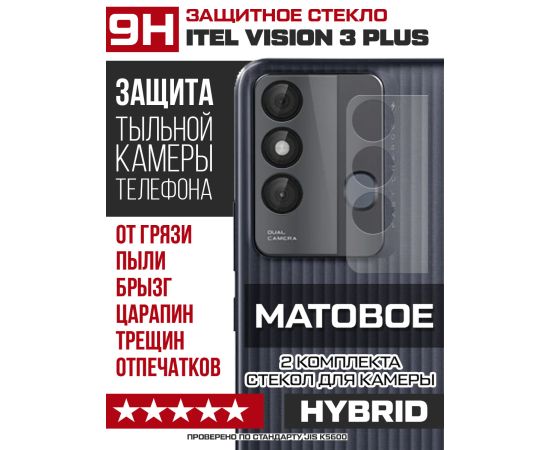 Стекло защитное гибридное МАТОВОЕ Krutoff для камеры ITEL Vision 3 Plus (2 шт.)