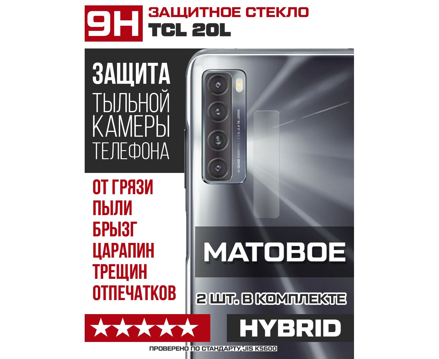 Стекло защитное гибридное МАТОВОЕ Krutoff для камеры TCL 20L (2 шт.)