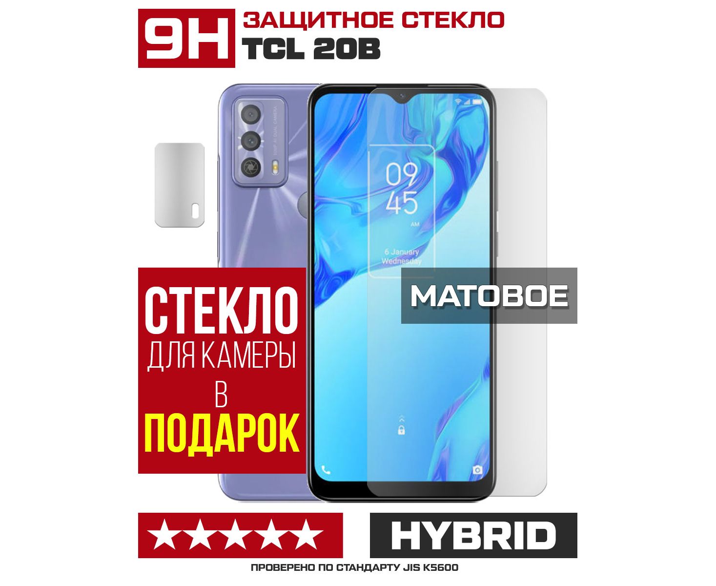 Стекло защитное гибридное МАТОВОЕ Krutoff для TCL 20B + защита камеры (2 шт.)