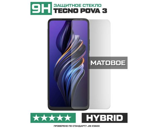 Стекло защитное гибридное МАТОВОЕ Krutoff для Tecno Pova 3