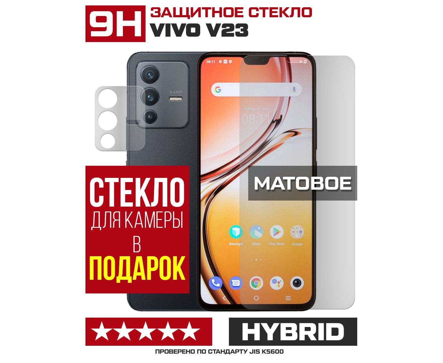 Стекло защитное гибридное МАТОВОЕ Krutoff для Vivo V23 + защита камеры (2 шт.)