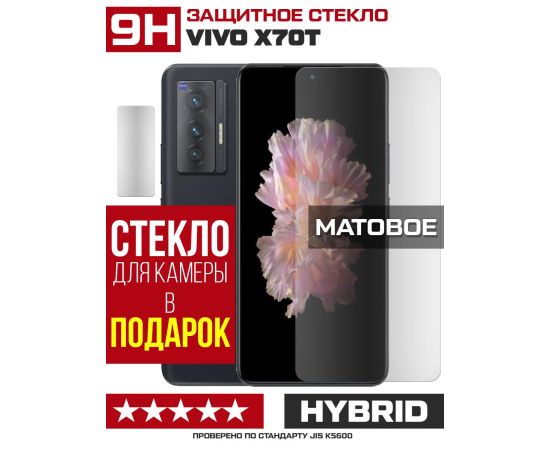 Стекло защитное гибридное МАТОВОЕ Krutoff для Vivo X70T + защита камеры (2 шт.)