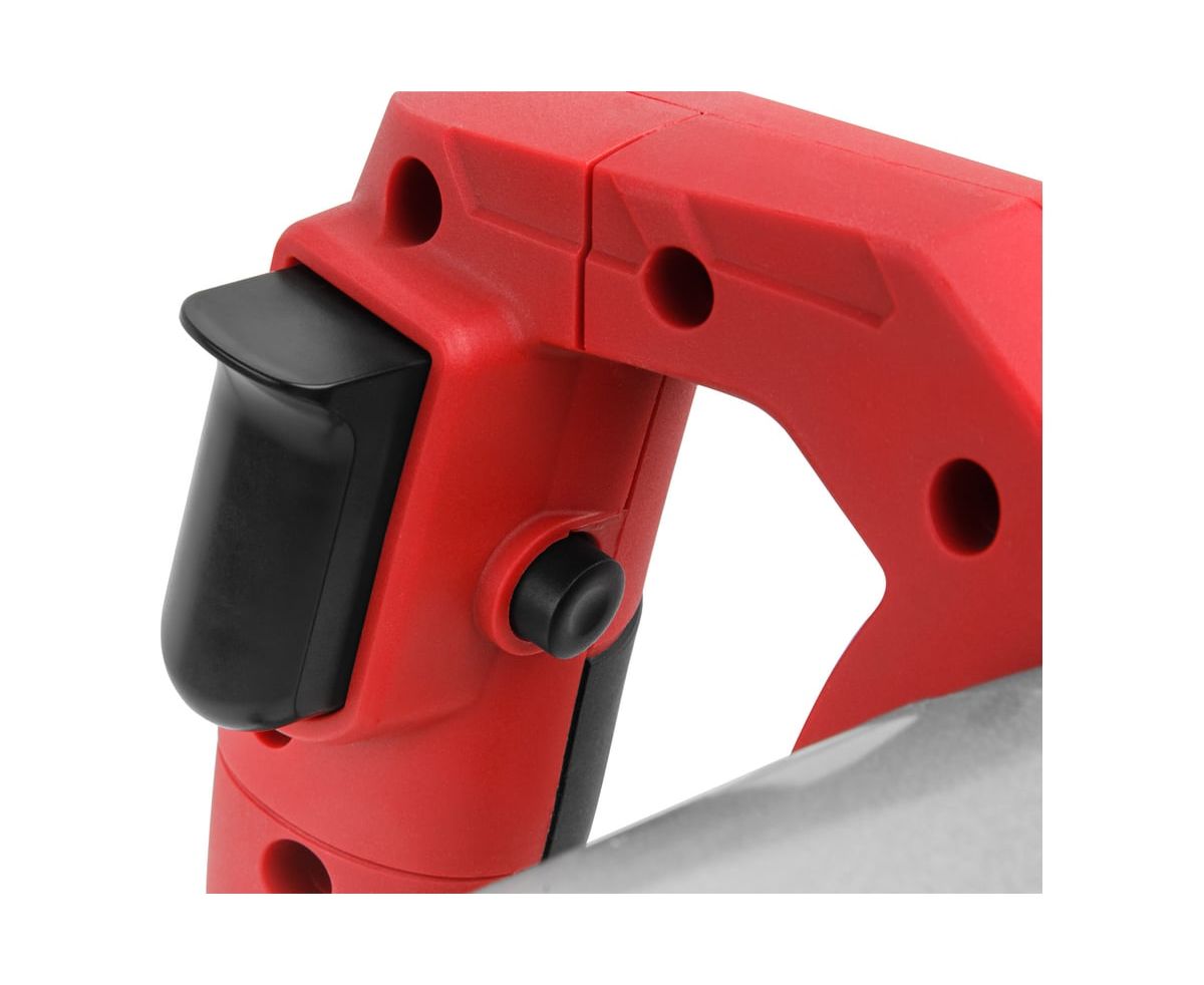 Инструмент имеет прорезиненные рукоятки, а также лёгкий доступ к угольным щеткам для замены.