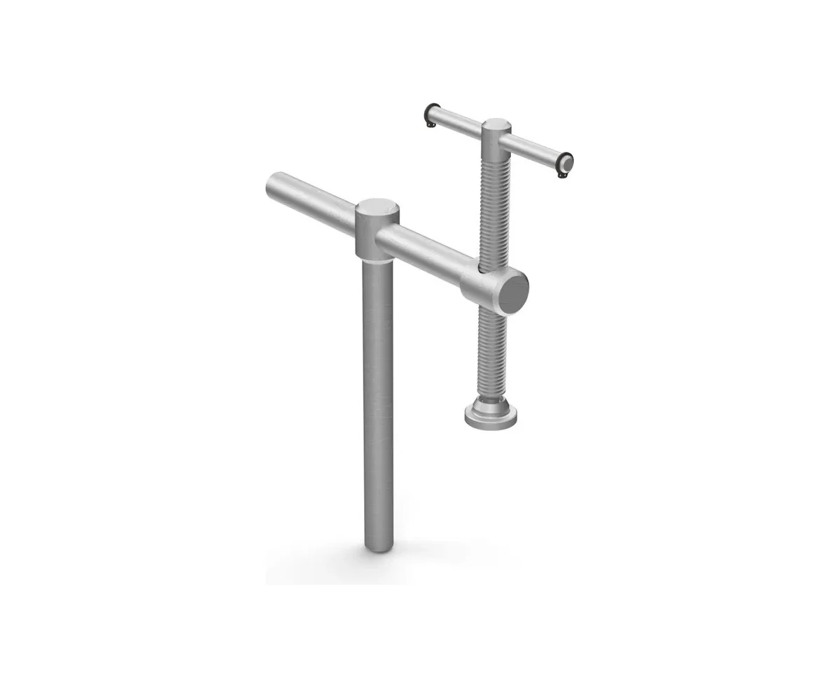 Ручной зажим для сварочных столов с системой позиционирования D16. Устанавливается в любое отверстие на столешнице или приспособлении, одним оборотом барашка создает прижим более 200 кг.