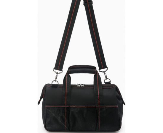Сумка для инструмента Dr. IRON 360x150x230 мм, с ремнем DR1004 используется для хранения и транспортировки инструмента, различных деталей и крепежа. Экологически чистый безопасный материал сумки не содержит токсичных веществ: фенолов, формальдегидов, тяжелых металлов. С внешней стороны сумки - полиэстер Oxford 600D с ПВХ пропиткой, с внутренней стороны - подкладка из полиэстера.