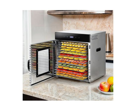 На сушилке можно установить температуру сушки в диапазоне 35–75 С с шагом 5 градусов. Сушилка оснащена таймером до 24 часов работы с шагом 30 минут.