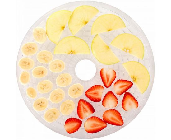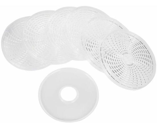 Удобная сушилка для овощей и фруктов с оптимальной мощностью 250 Вт укомплектована 6 прозрачными поддонами из первичного пищевого пластика и одним поддоном для пастилы, диаметр поддонов - 26 см. Особое удобство создает регулируемая высота секций - от 1,5 см до 3 см, а также наличие терморегулятора в сушке для овощей. Оптимальный диапазон температуры сушилки от 35°C до 70°C с терморегулятором позволяет готовить различные блюда, а для новичков предусмотрена инструкция с рецептами. В сушилку для фруктов встроен вентилятор, что сокращает время обработки продуктов.
