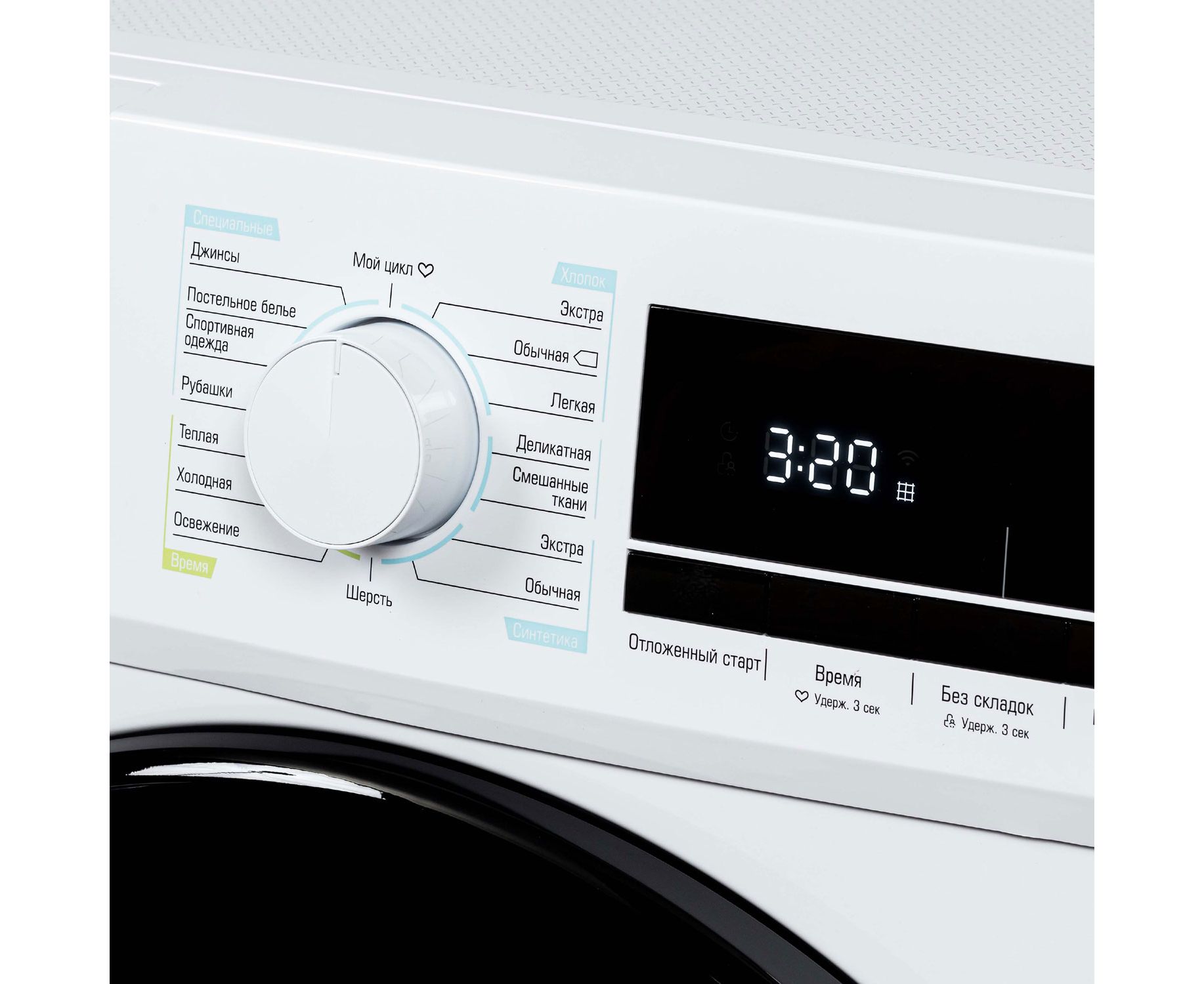 Программы: Хлопок (экстра, обычная, легкая), деликатная, смешанные ткани, синтетика (экстра, обычная), шерсть, теплая, холодная, освежение