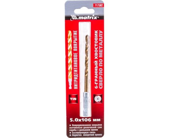 Сверло Matrix 717502 по металлу Д-5мм Дл-106мм (1пред) для дрелей