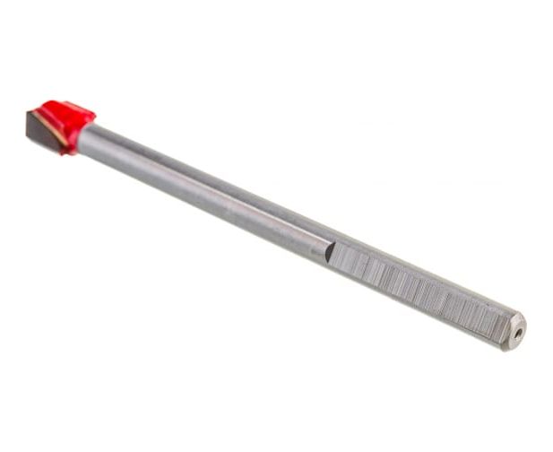 Сверло по стеклу и плитке подходит для сверления не каленого стекла, плитки мягкой и средней твердости, керамики. Режущая кромка сверла изготовлена из заточенного твердосплава, идеальна для быстрого сверления. Усиленная конструкция рабочей части увеличивает срок службы сверла. Наконечник окрашен в красный цвет. Хвостовик имеет грани для предотвращения проворачивания в патроне.