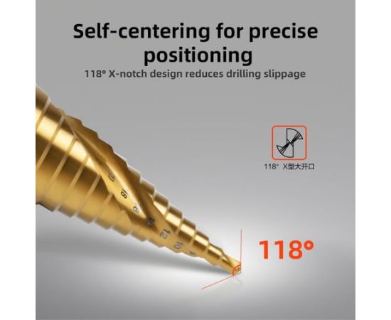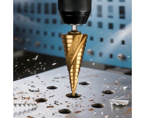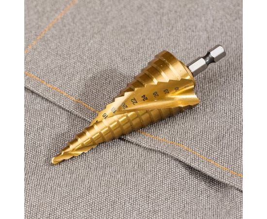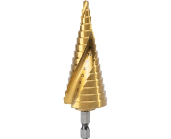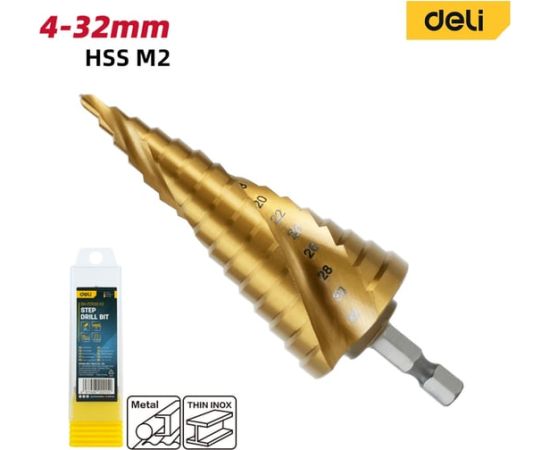Сверло ступенчатое по металлу Deli DH-JTZ032-E2 4-32мм, HSS M2, спиральная канавка, шестигранный хвостовик