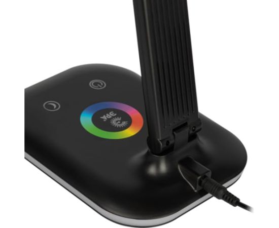 Настольный светильник ЭРА NLED-502-11W-BK со светодиодами (LED) в качестве источников света. Удобная складная модель с сенсорным управлением, возможностью выбора цветовой температуры и плавным диммером для регулировки яркости. В основание светильника встроен светодиодный ночник с независимым выключателем и выбором режима работы.