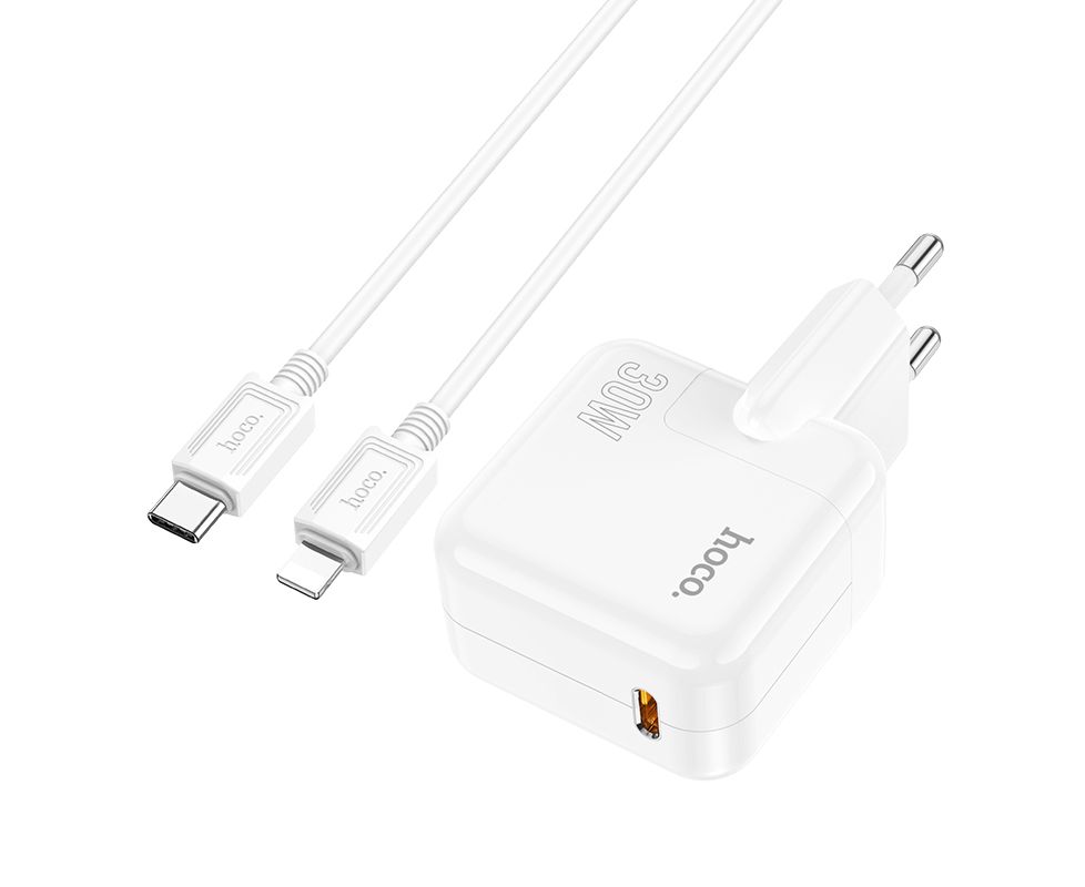 СЗУ 1Type-C 3.0A QC3.0 PD 30W быстрая зарядка для Type-C Lightning 8-pin Hoco C112A 1м (White)
