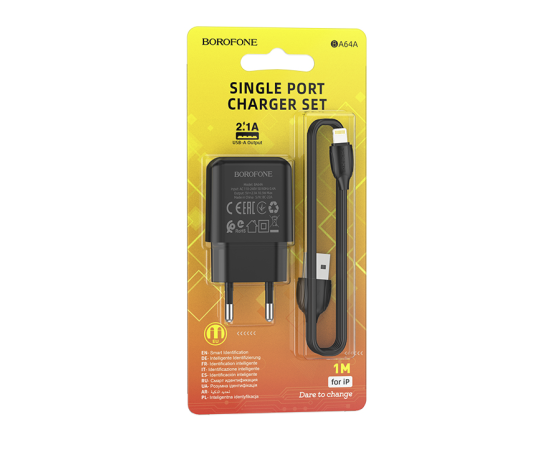 Сетевое зарядное устройство Borofone BA64A обладает стабильным показателем мощности, что обеспечивает быструю зарядку устройства и сводит к минимуму возможные повреждения. Значение силы тока на выходе USB 2,1 A. Детали корпуса выполнены из пластика высокого качества. Порт зарядки надежно зафиксирован в гнезде устройства, рассчитан на длительную производительность. Комплектуется кабелем Lightning 8-pin длиной 1 м.