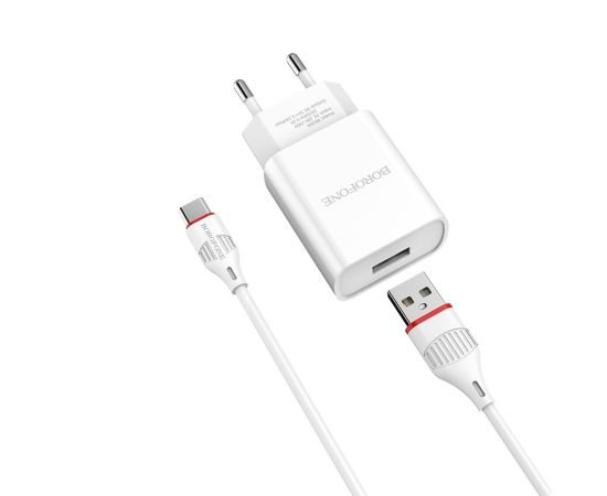 СЗУ 1USB 2.1A для Type-C Borofone BA20A 1м (White)