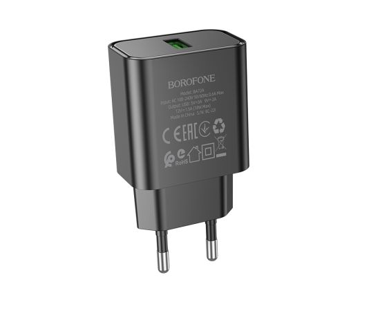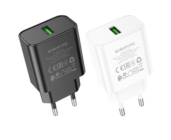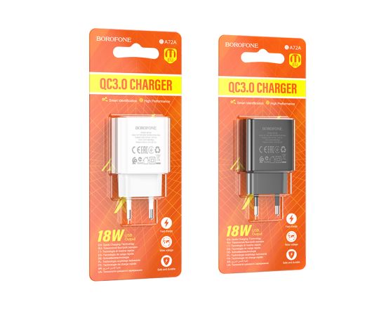 Borofone BA72A - это сетевое зарядное устройство с одним выходом USB-A и поддержкой стандарта быстрой зарядки QC 3.0, которое быстро и безопасно зарядит ваши устройства. Поддерживает силу тока до 3 А и обладает стабильным показателем мощности 18 Вт, что обеспечивает быструю зарядку устройства и сводит к минимуму возможные повреждения. Корпус изготовлен из огнестойкого пластика ABS + PC. Выполнено в двух цветах.