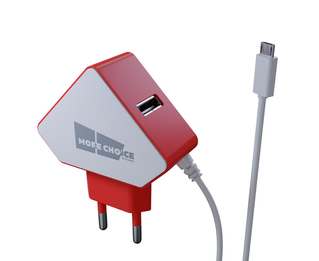СЗУ 2USB 1.5A для micro USB со встроенным кабелем More choice NC42m (White Red)