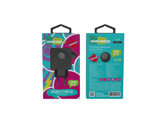 СЗУ 2USB 2.1A для Lightning 8-pin со встроенным кабелем и LED подсветкой More choice NC48i (Black)