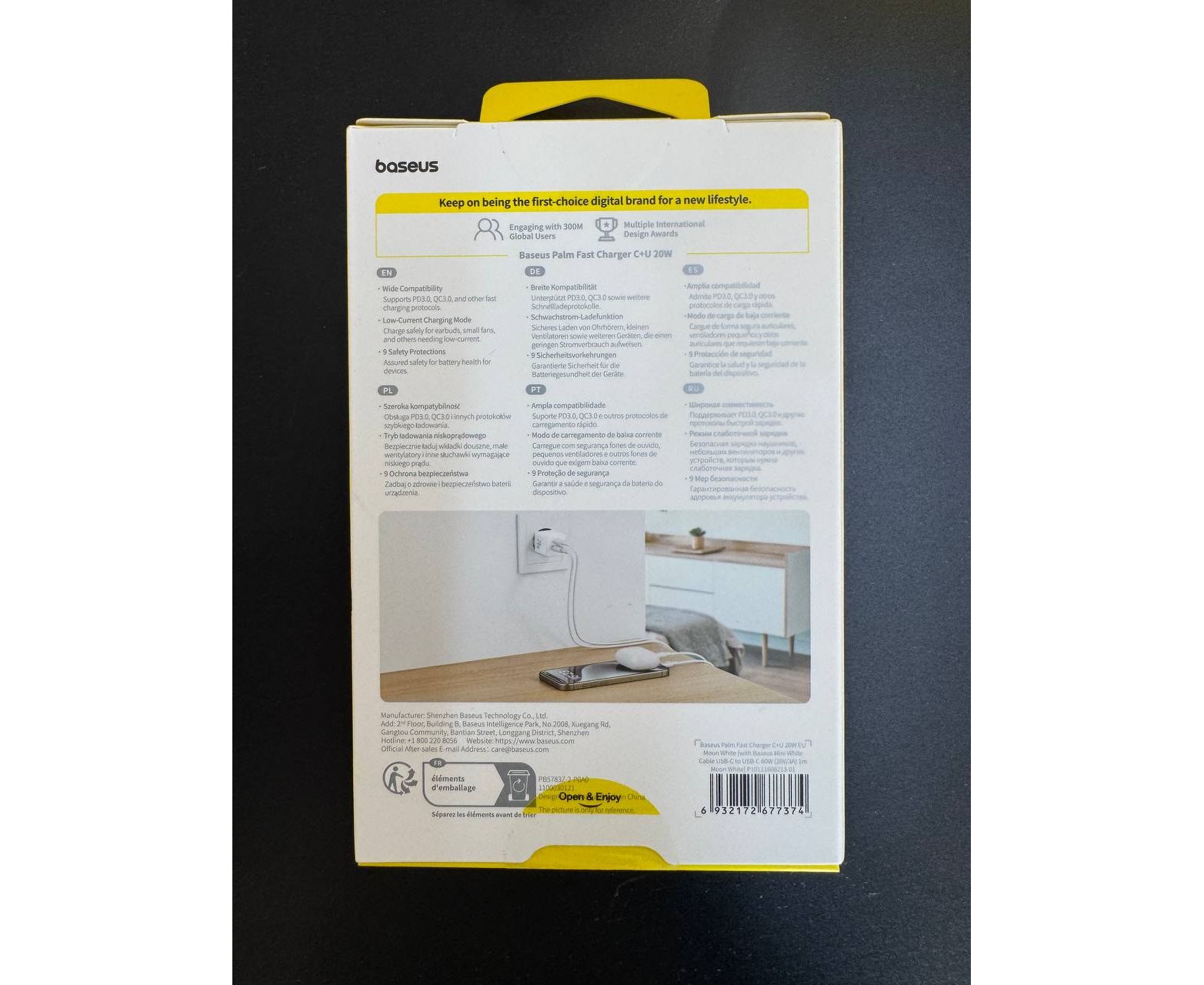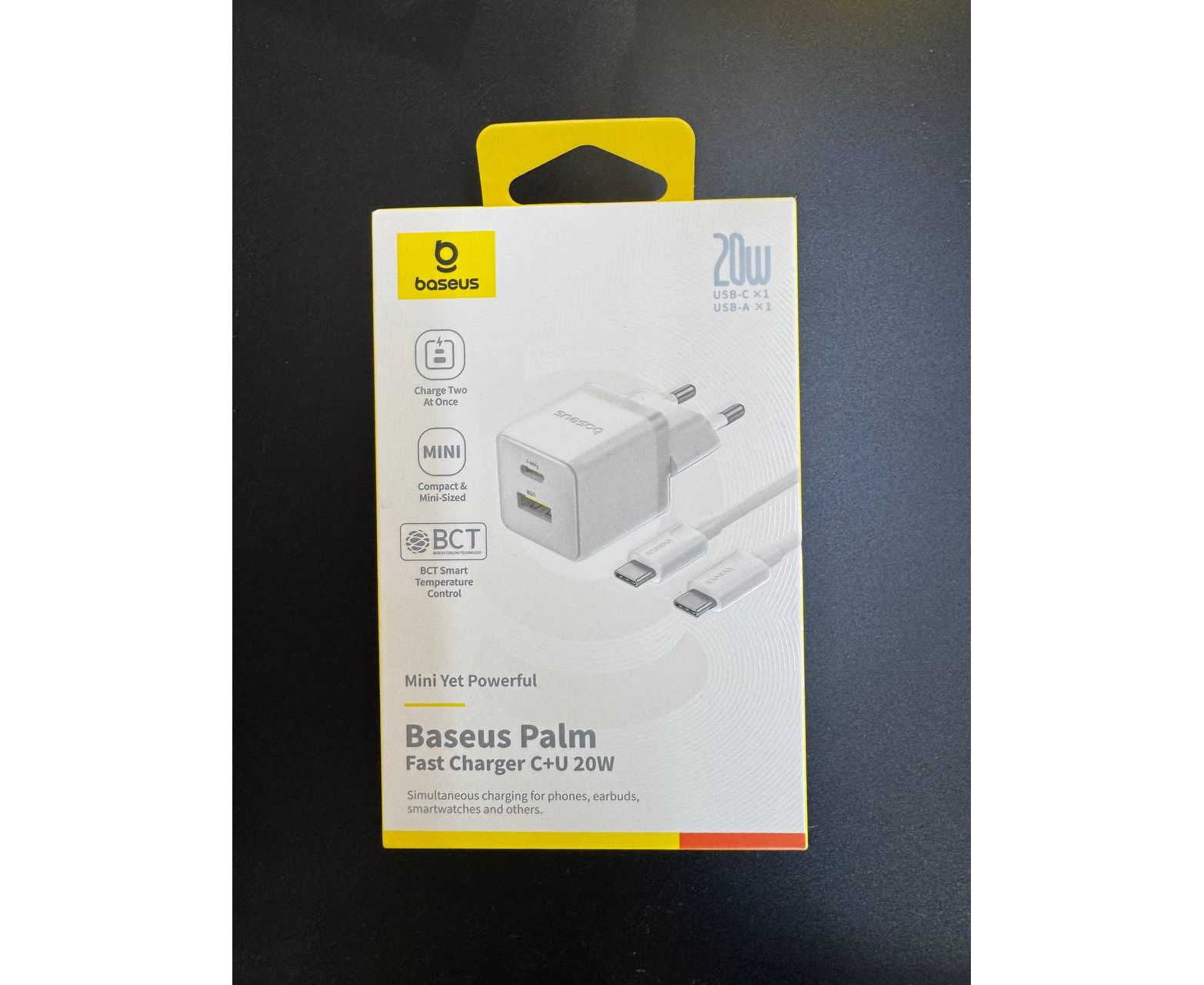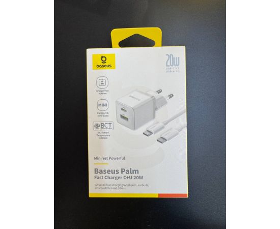 СЗУ Baseus Palm Fast Charger C+U 20W EU Moon White (with Cable USB-C to USB-C 60W)