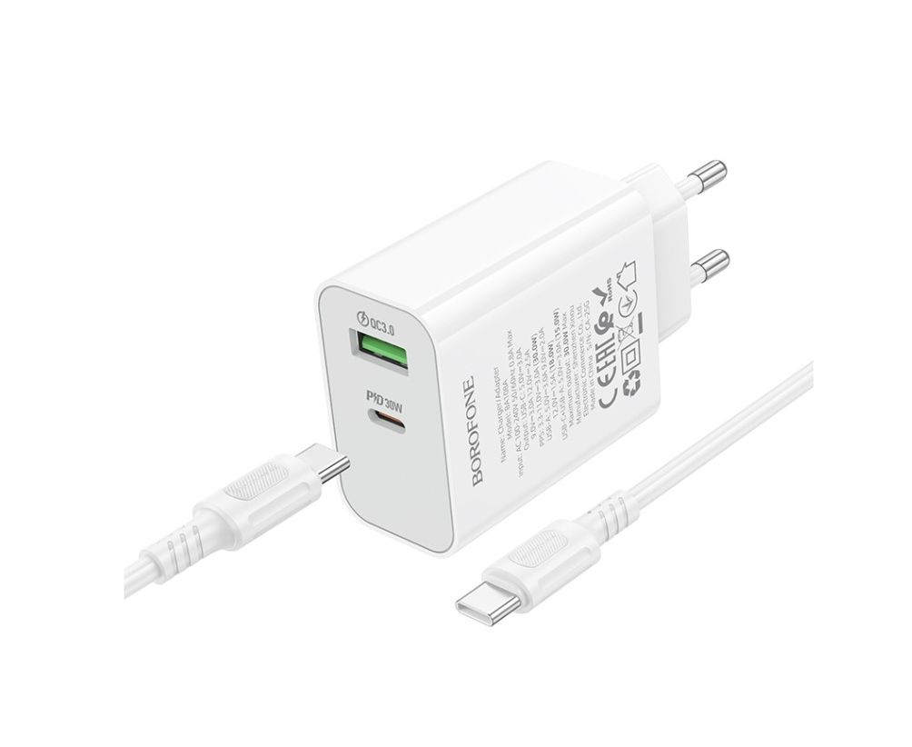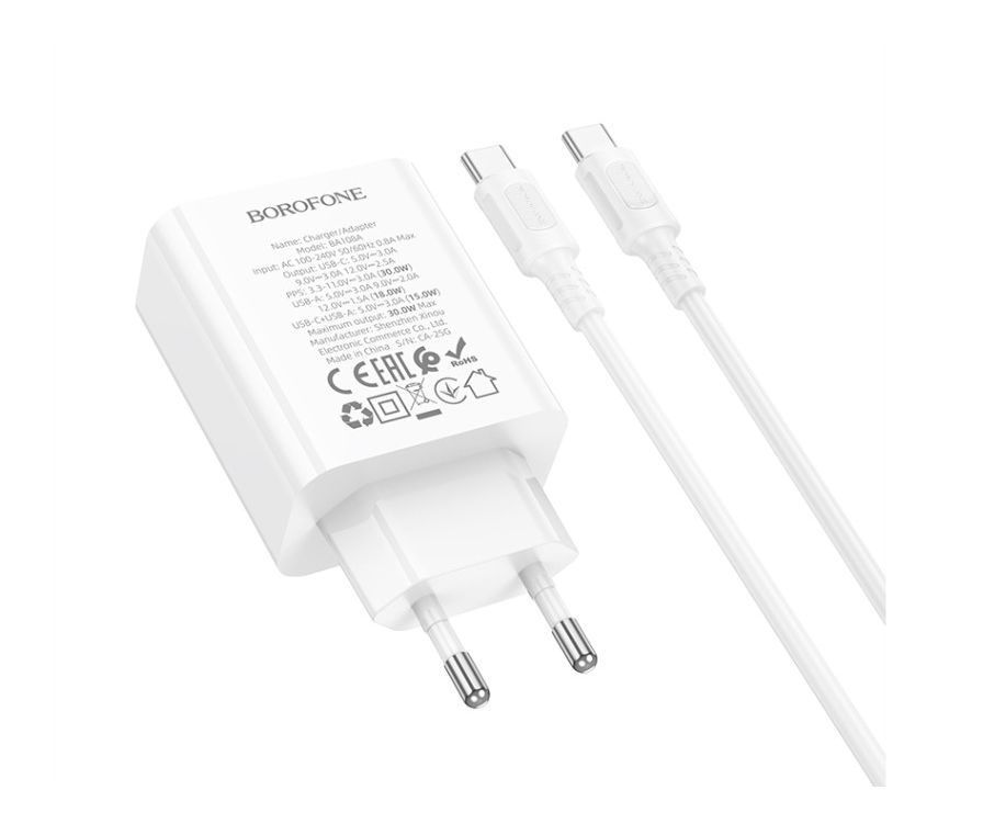 СЗУ BOROFONE BA108A Stellar PD30W+QC3.0 charger set(C to C)(EU) (белый)