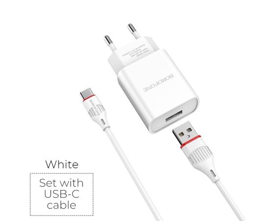 СЗУ BOROFONE BA20A Sharp 1USB, 5V, 2,1A + Type-C (белый)