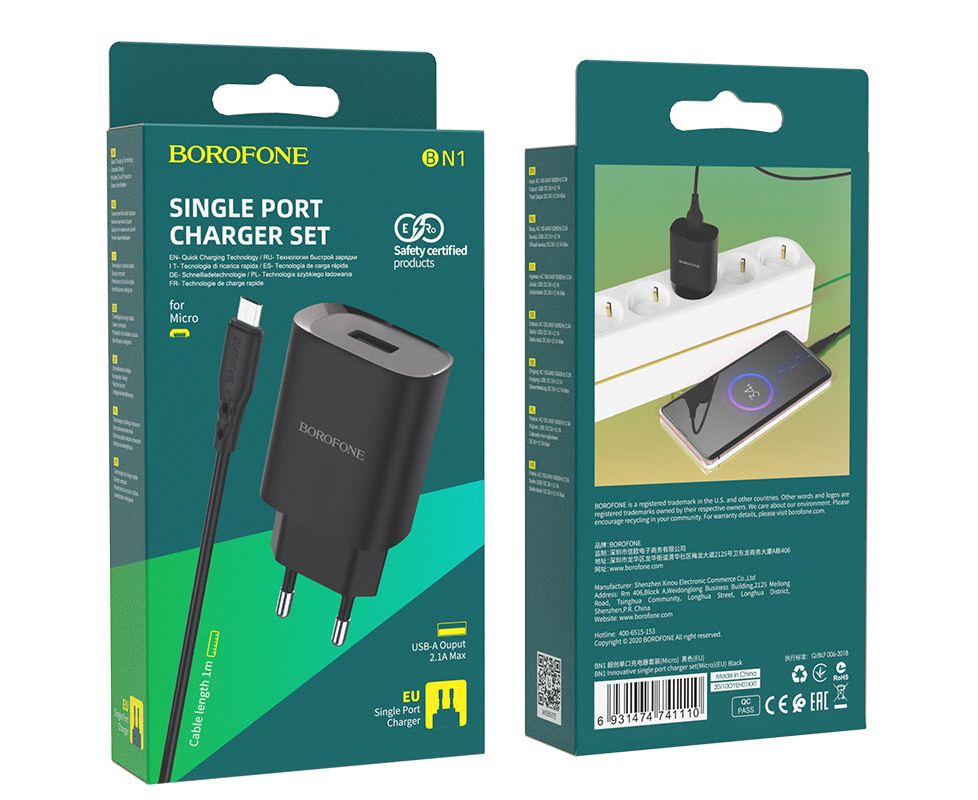 СЗУ BOROFONE BN1 Innovative 1USB charger set + Micro (чёрный) (акция)