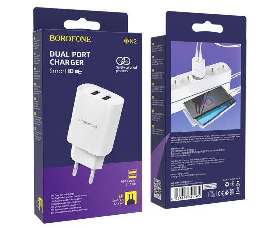 СЗУ Borofone BN2 super fast 5V / 2.1A dual port, white