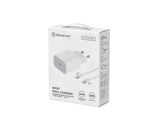 СЗУ Breaking WC07, USB-C, PD 20W + кабель Type-C - Type-C (Белый)
