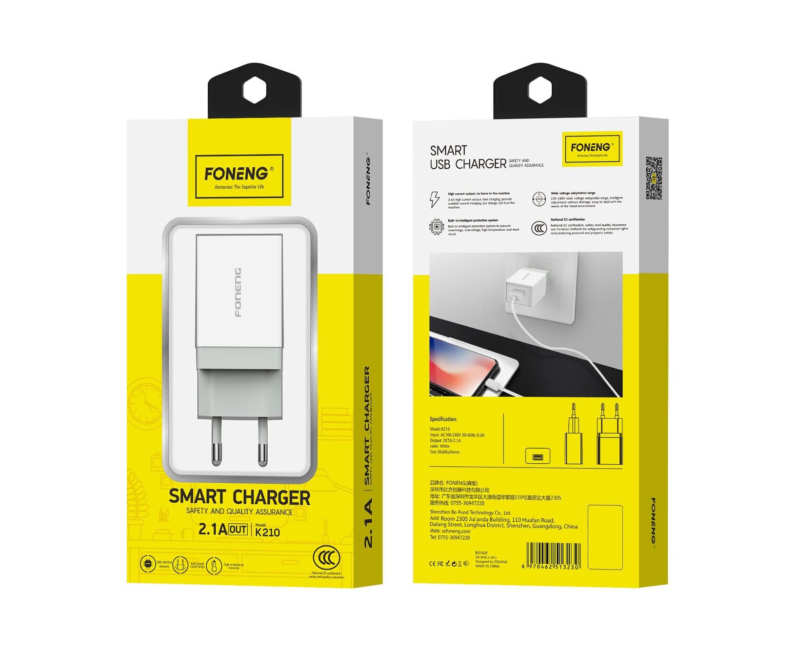 СЗУ Foneng K210 1USB 2.1A (White)