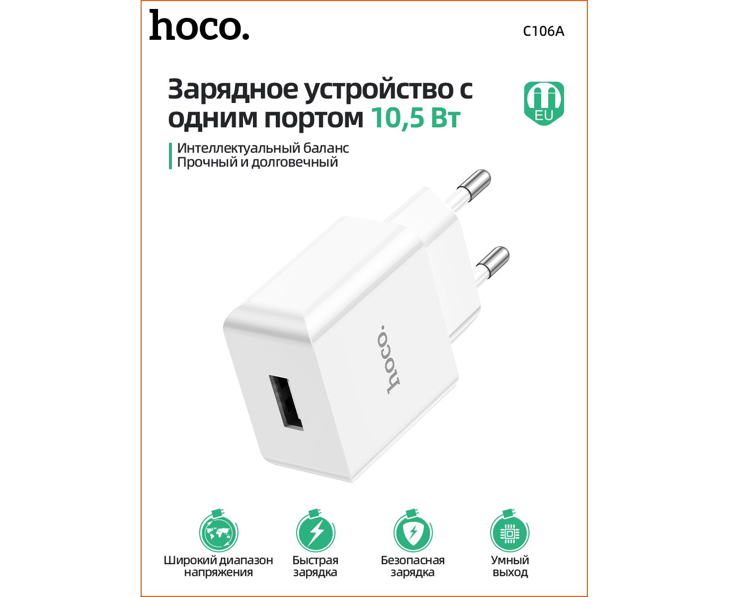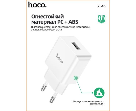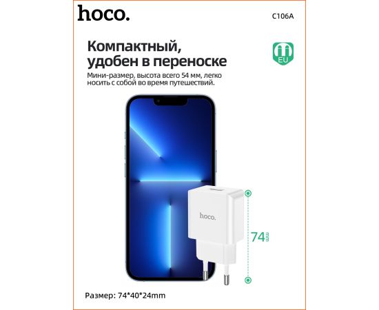 СЗУ HOCO C106A Leisure, 1USB + Micro (EU) (белый)