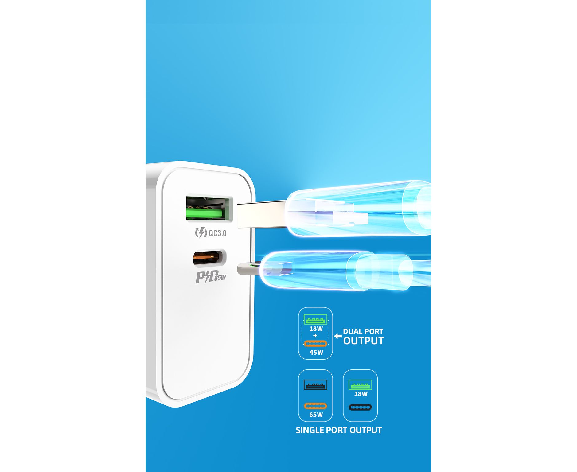 Тип-C+USB-A: 45 Вт+18 Вт