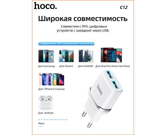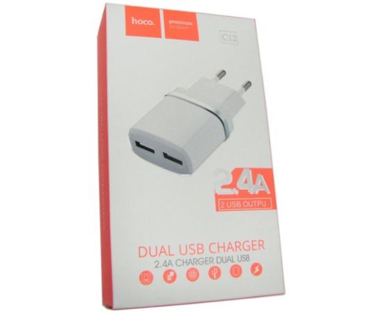 СЗУ HOCO C12, 2USB, 2.4A (белый)