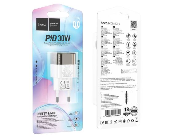 СЗУ HOCO C131A Platinum dual-port PD30W+QC3.0 charger(EU)