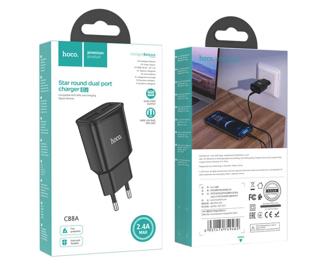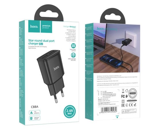 СЗУ HOCO C88A Star round, 2USB, 2.4A (черный)