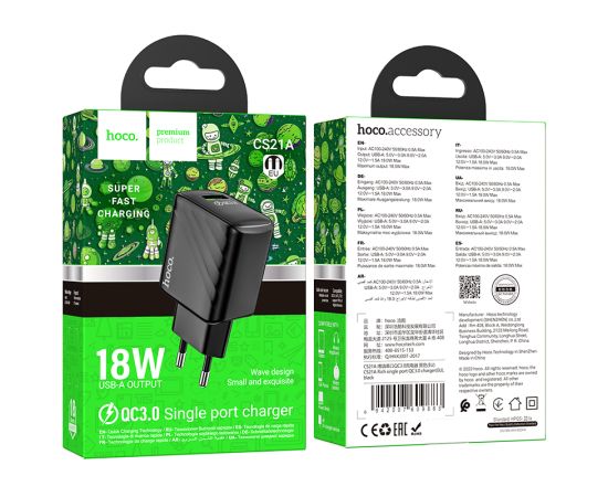 СЗУ HOCO CS21A Rich single port QC3.0 charger black