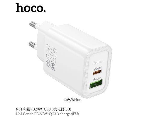 СЗУ HOCO N61 Gentle PD20W+QC3.0 (белый)