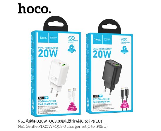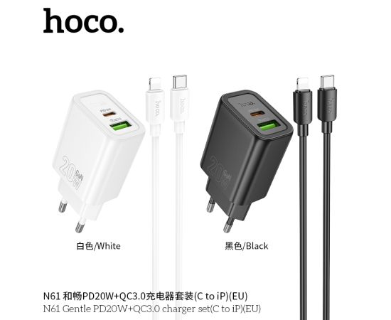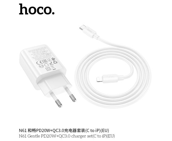 СЗУ HOCO N61 Gentle PD20W+QC3.0 + cabel (Type-C to Lightning) (белый)