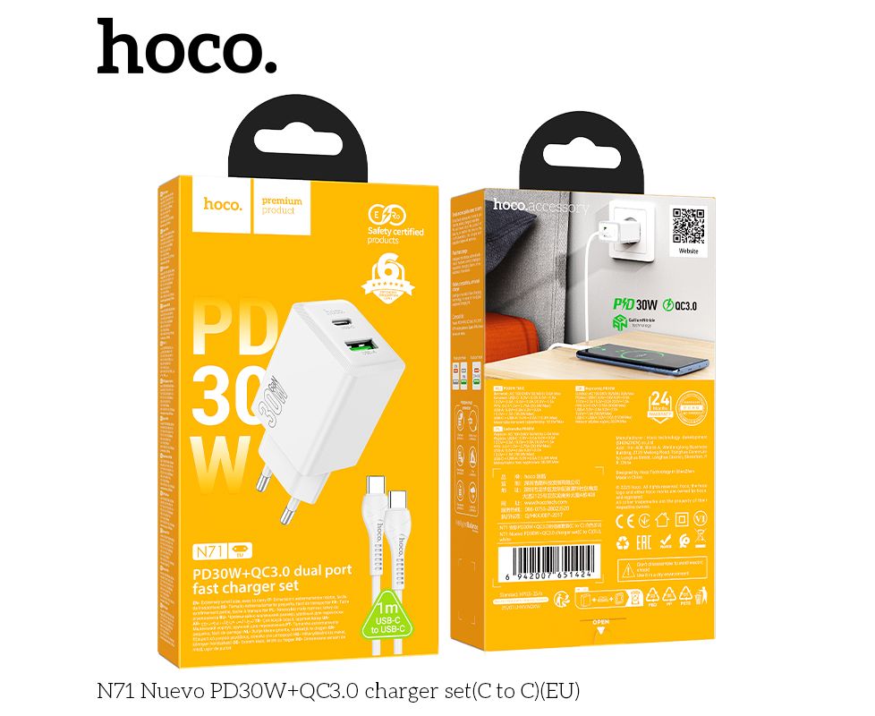 N71 Nuevo PD30W+QC3.0 зарядное устройство набор (C на C)(EU)