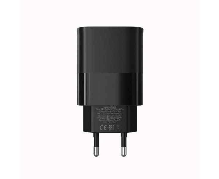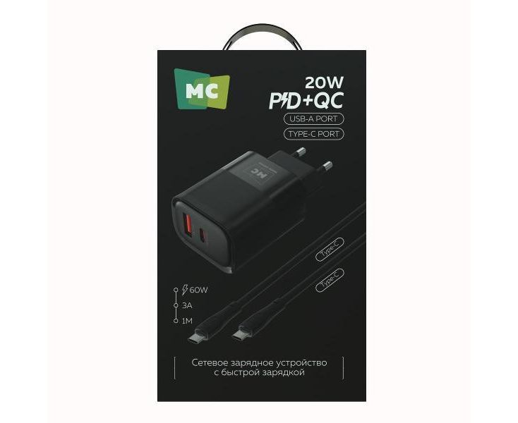 СЗУ More Choice NC81a 1USB+1Type-C 3.0A PD 20W+ QC3.0 быстрая зарядка для Type-C Type-C Black