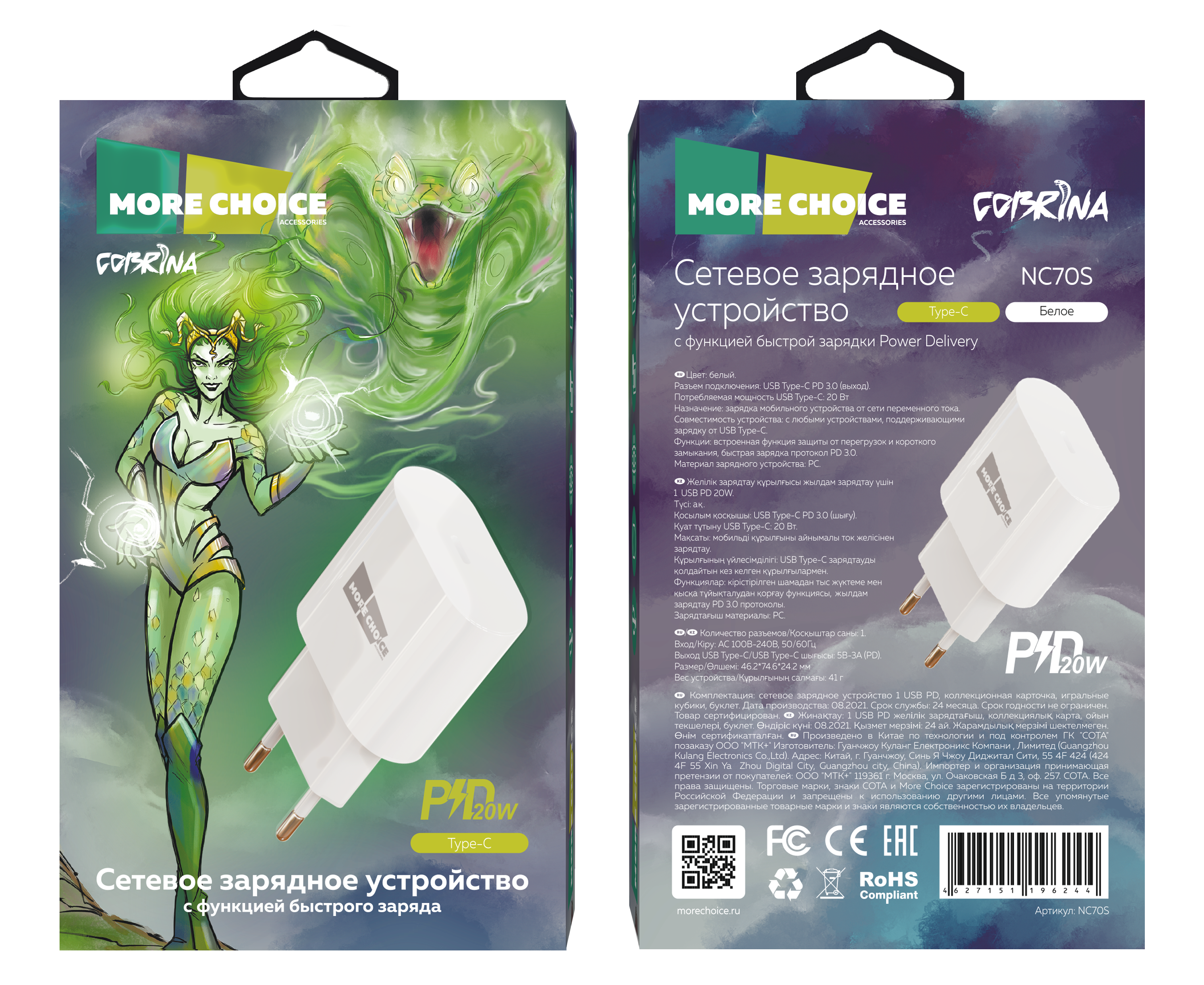 Материал: PC Разъем подключения: USB Type-C PD 3.0 Вход: 100В/240В. Максимальный выходной ток: 3.0 A Технология ускоренного заряда: Quick Charge 3.0, протокол PD 3.0. Комплектация: сетевое зарядное устройство, коллекционная карточка, игральные кубики, буклет Цвета: Black, White