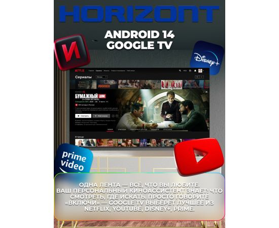 65" Телевизор Horizont 65UHDS25BG черный 3840х2160, 4K UltraHD, 60 Гц, Wi-Fi, Smart TV, Яндекс ТВ