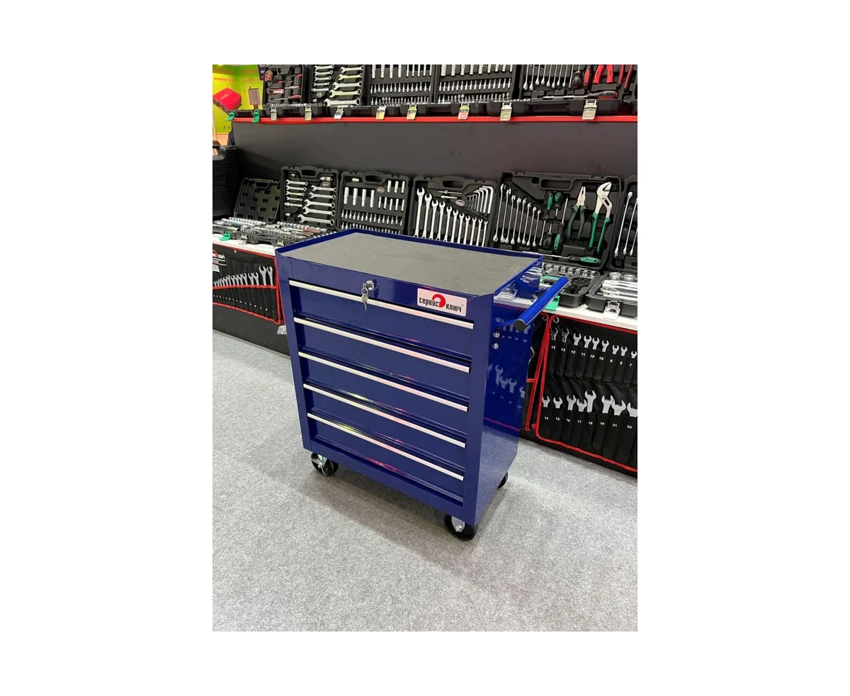 Инструментальная сервисная тележка СЕРВИС КЛЮЧ 5 секций – это универсальная металлическая передвижная конструкция для хранения инструментов и других принадлежностей. Она подходит для использования в различных условиях: в автосервисе, гараже на даче или мастерской. Вы сможете хранить в ней абсолютно разные предметы, будь то инструменты, рыболовные и охотничьи принадлежности и другие необходимые вещи.
