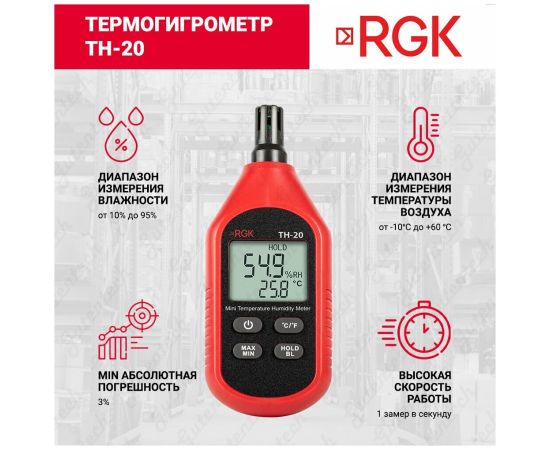 Термогигрометр RGK TH-20 776486 - измерительный прибор, который предназначен для определения температуры и влажности окружающей среды.
